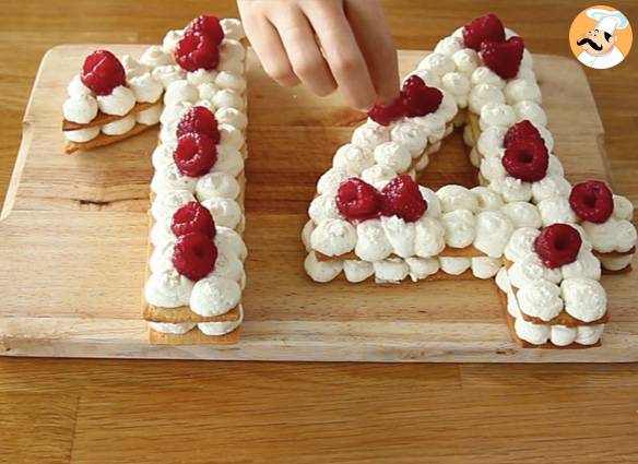 Faire un gâteau en forme de chiffre, c'est le gâteau idéal pour un anniversaire d'enfant Je vais vous dévoiler, comment j'ai réussi à faire le chiffre 5 Il faut 1 gâteau rond et 1 carré, de même diamètre (ici cm) Pour la recette choisie, c'est celle du cake à la vanille, idéal pour faire des gâteaux sculptés4 oeufs 130g de farine 60g de crème pâtissière en poudre (ou de maïzena) 11 c à s de sucre 5 c à s d'huile 11 c à s de lait 2 sachets de vanille 4 c à c de levure chimique 70 g de chocolat vermicelle Pour la crème au beurre 250g de beurre 2 c à s de lait 500g de sucre glace Pour le montage Confiture de fraise PourNos gâteaux à figurines sont fournis avec la/les figurines en plastique, ainsi votre enfant peut la/les
